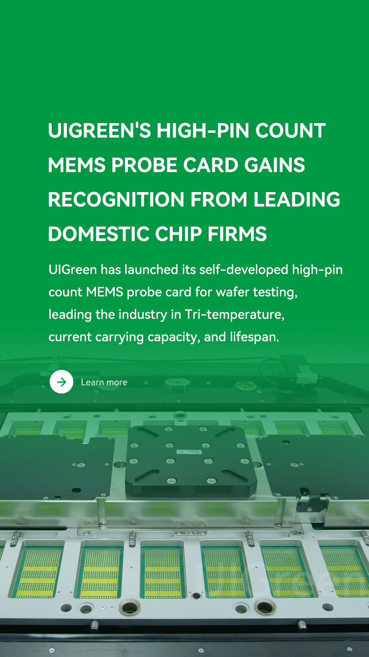 UIGreen is a national high-tech enterprise specializing in micro precision manufacturing and a provider of advanced semiconductor testing interface products. The products are widely used in multiple high-end manufacturing fields, such as MEMS, semiconductor chip testing (Memory/ AI/ CPU/ GPU), automobiles & medical.
